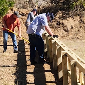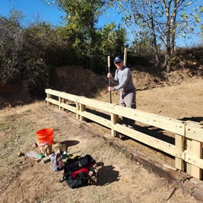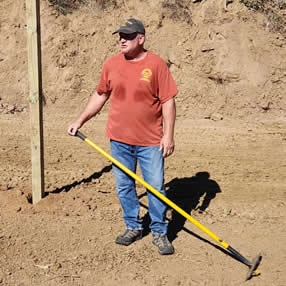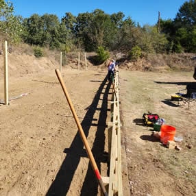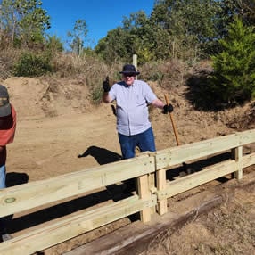 While the awning is being cleaned and repainted Mark Franecki organized and supervised a repair of the backstop and replacement of the target holders. Mark and JD Watson also took advantage of the skid steer to improve the pistol bays.